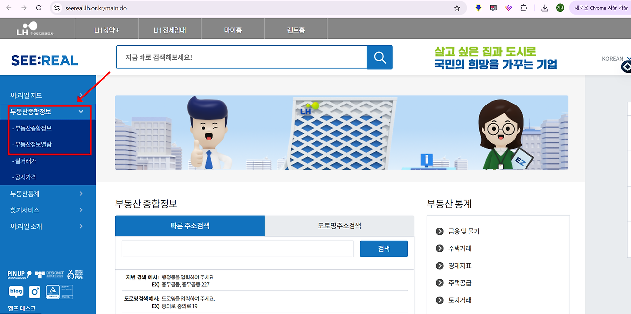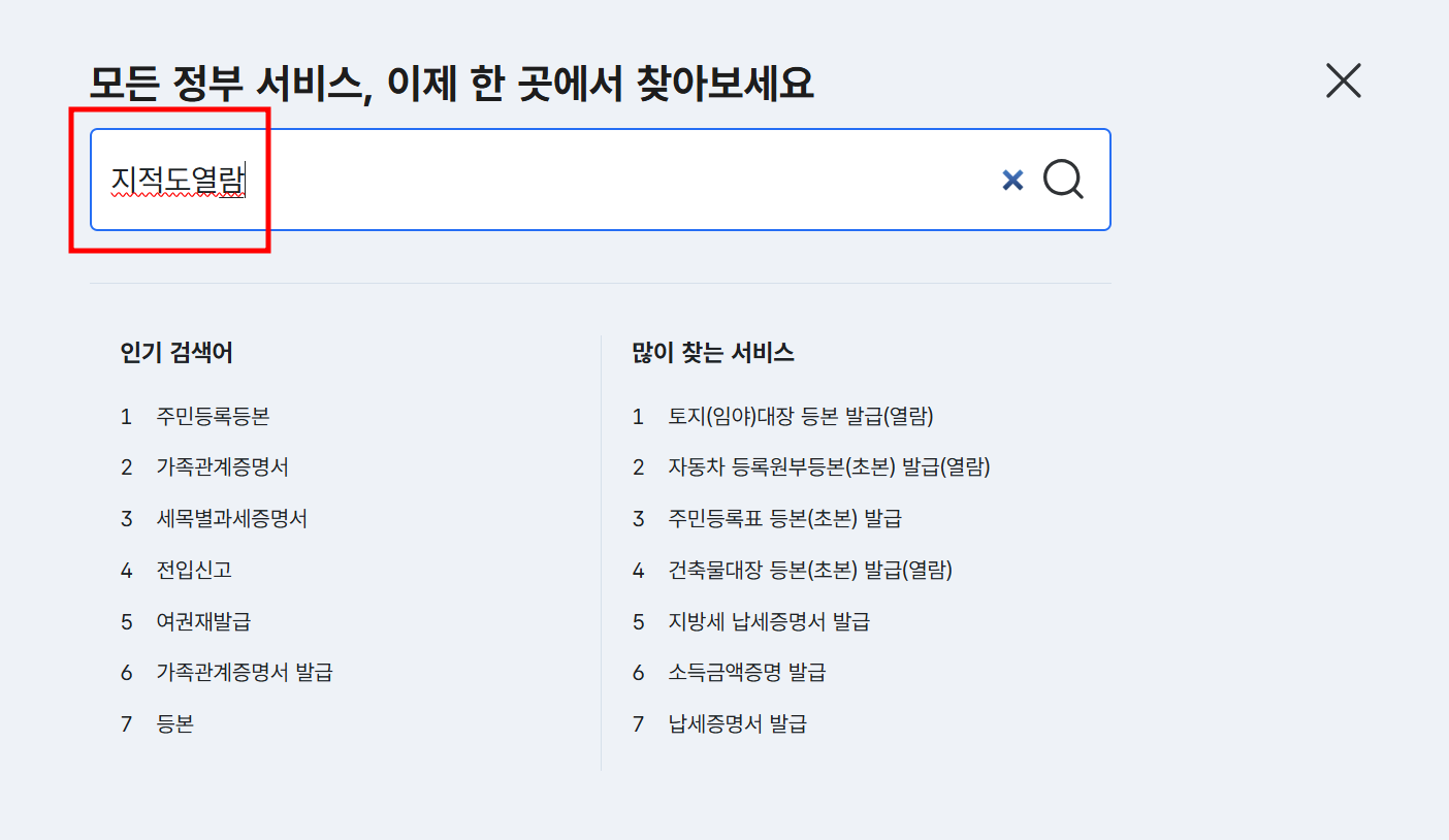 - 상단 검색창에 지적도 또는 지적도 열람 입력