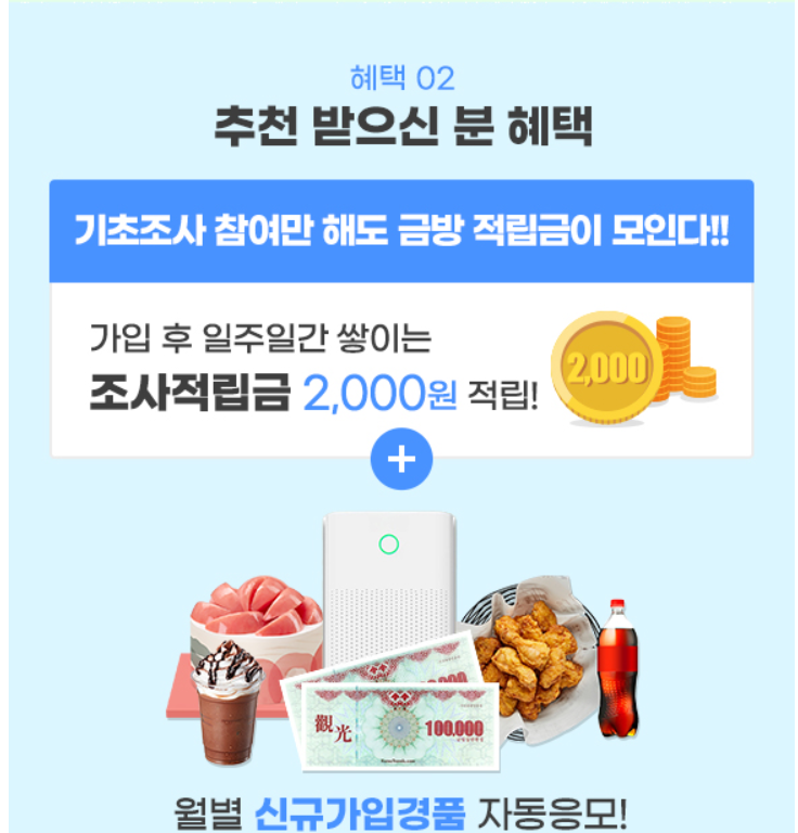 - 가입 직후 제공되는 가입 감사조사에 참여하면 2,000원~2,500원 적립!
