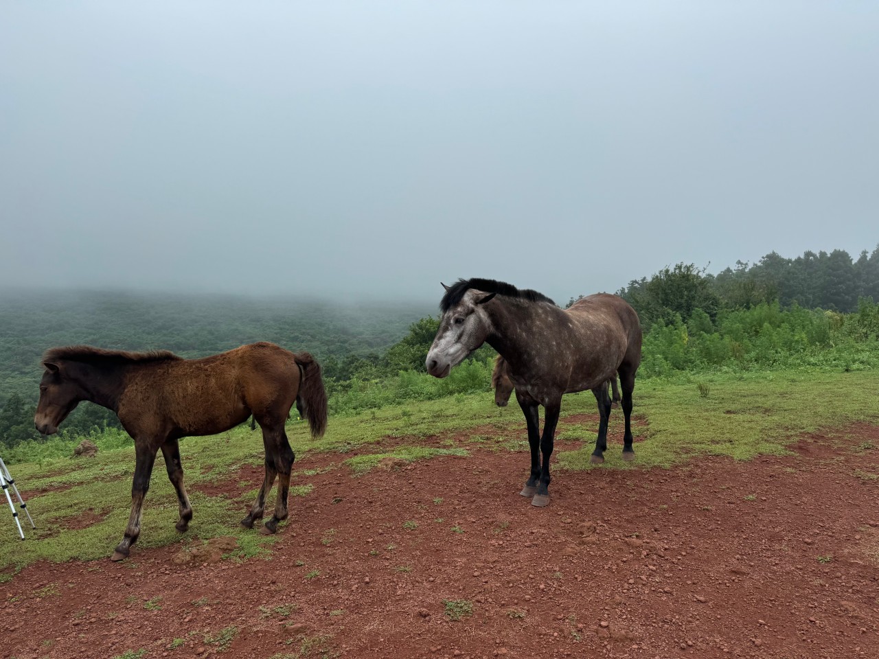 말주인께서 한번씩 말들을 풀어놓으시는데 이 말들이 문지기 오름을 자유롭게 오르내려서