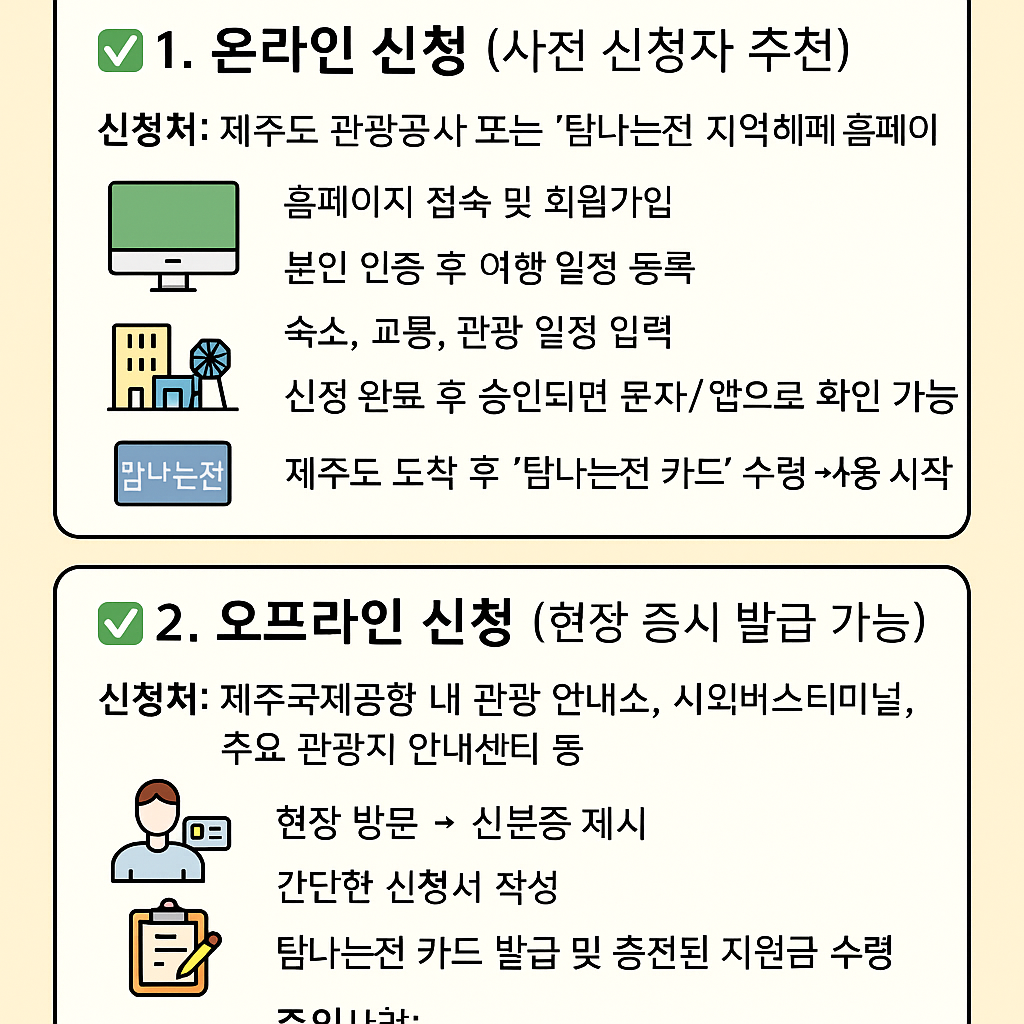 - 신청처: 제주도 관광공사 또는 ‘탐나는전’ 지역화폐 홈페이지