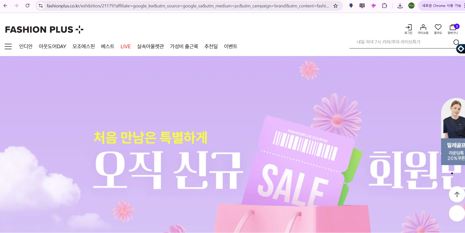 약 9천 개의 백화점 주요 브랜드를 매일매일 초특가로 만나보세요. 가장 가까운 아울렛, 패션플러스
