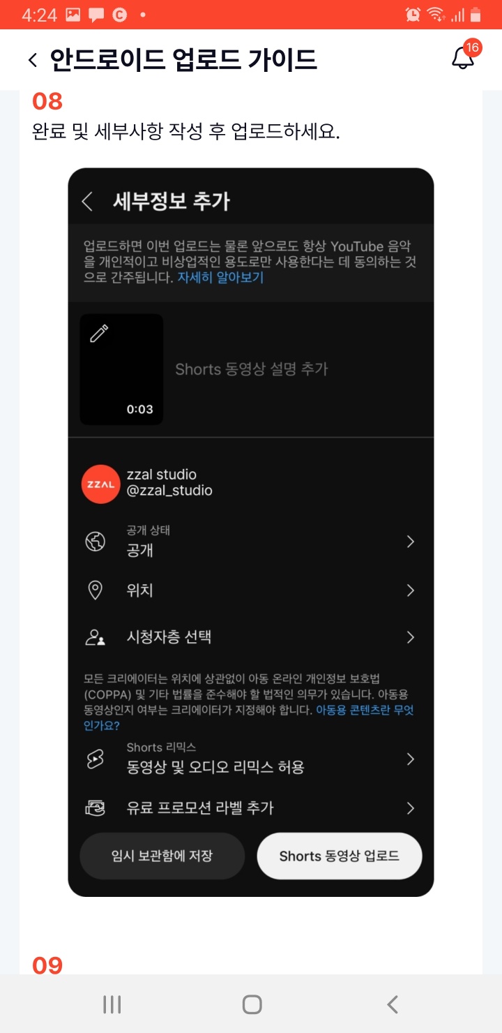 모바일 업로드 유의 사항