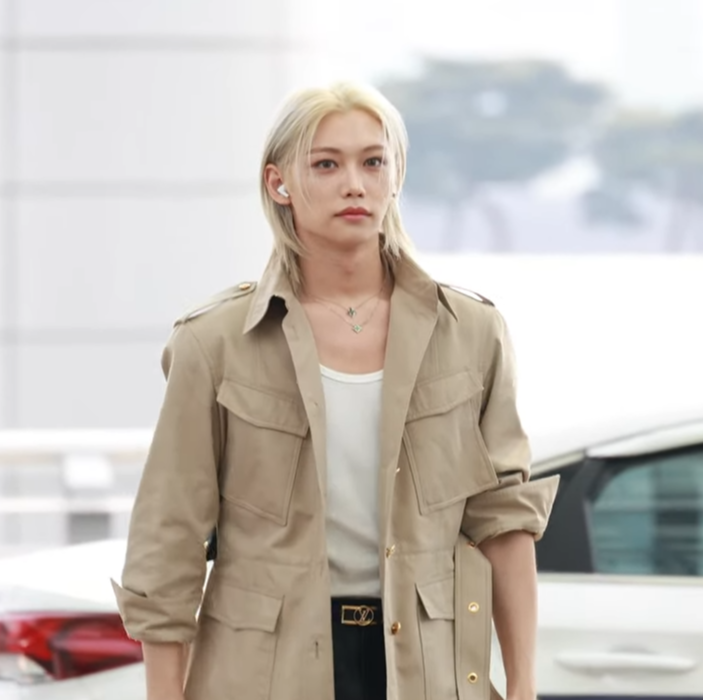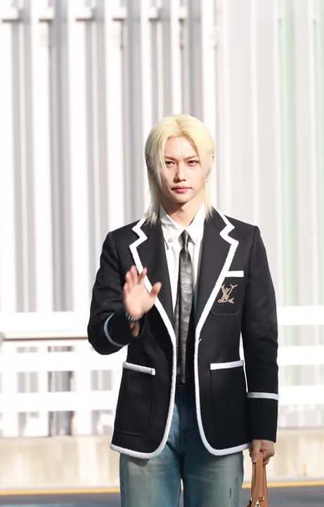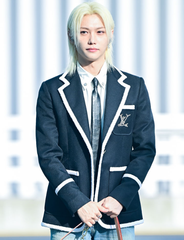 봄에 입기 좋을것 같아요 필릭스의 흰피부와 잘 어울리는 좋은 코디