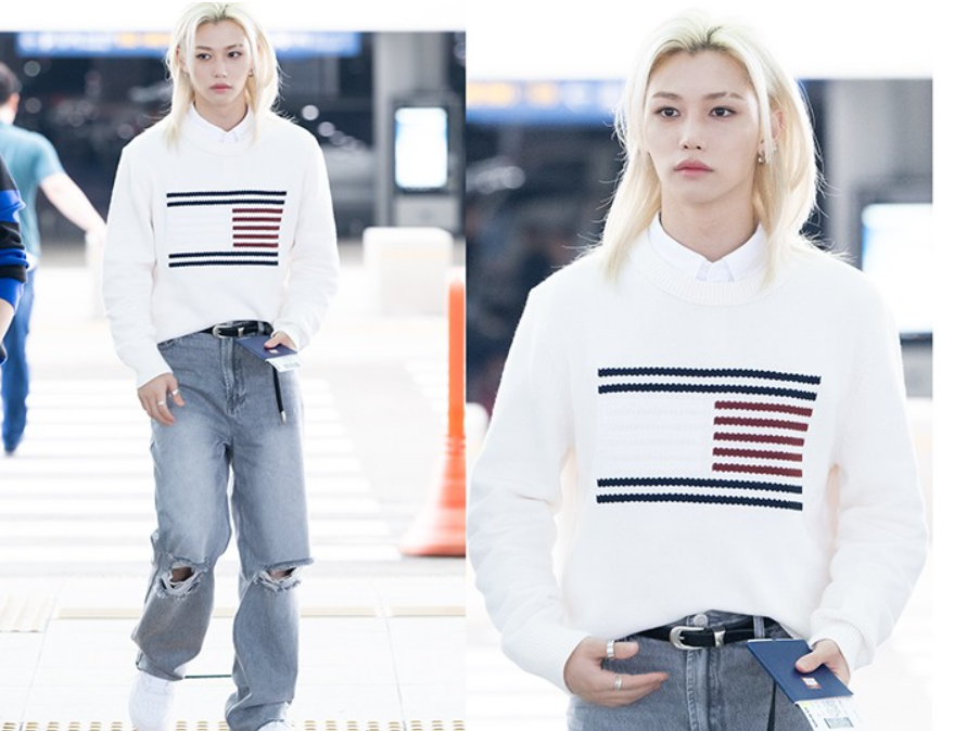 필릭스가 입은 남친룩 패션남자니트 브랜드는