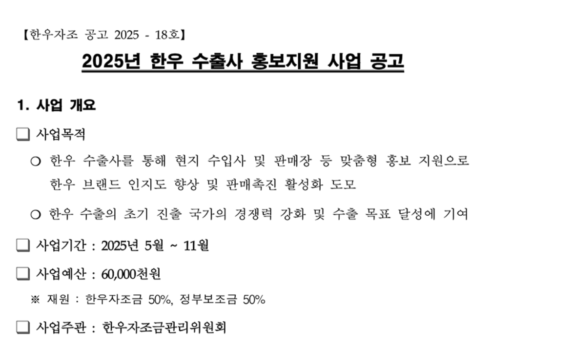 - 신청 방법: 한우자조금관리위원회 홈페이지에서 신청서 및 매입계획서 제출