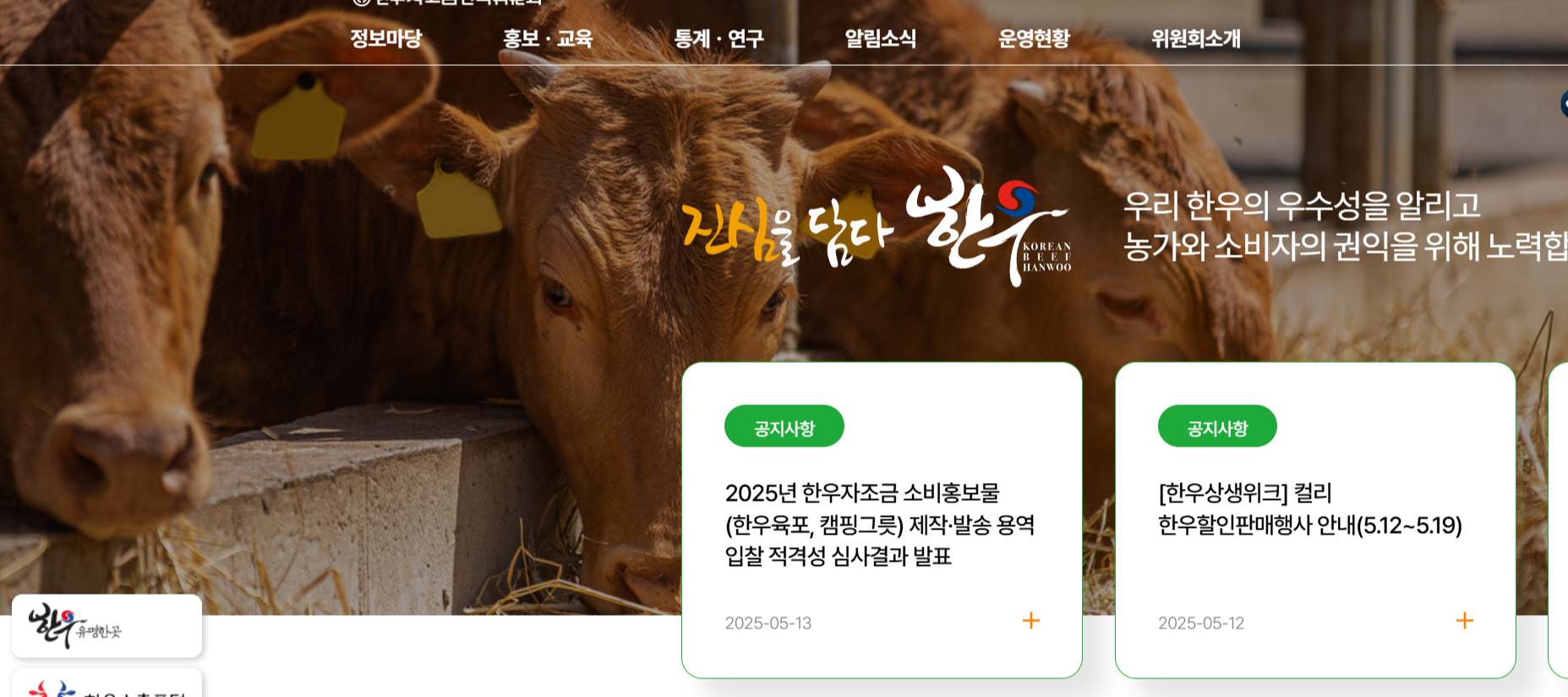 - 한우자조금관리위원회 홈페이지 접속 후 ‘공지사항’ 메뉴 확인
