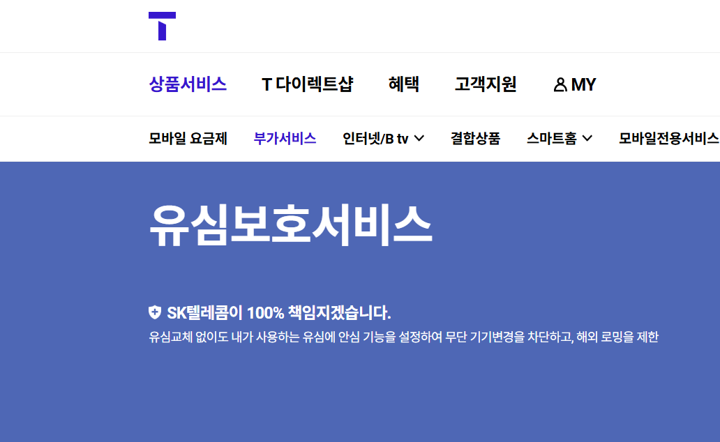 - T world 앱 또는 웹사이트에서 부가서비스 > 안심/보험 > 유심보호서비스 메뉴를 통해 가입할 수 있습니다.
